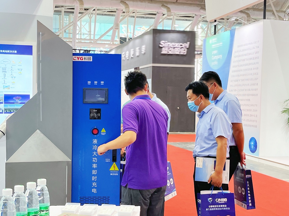 展会现场人头攒动,中欧zoty深瑞展出的液冷大功率直流充电机、120kW一体式直流充电机、160kW一体式直流充电机及解决方案吸引了众多与会领导和专家的高度关注。